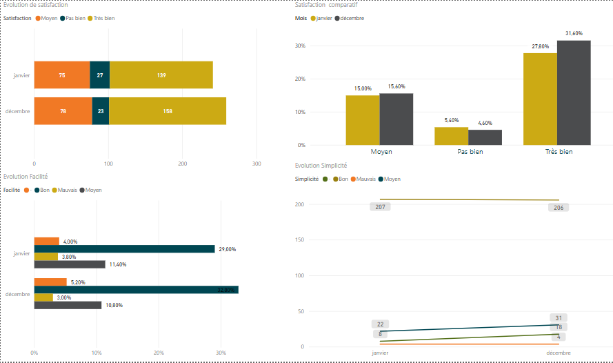 Notre objectif était clair : créer un tableau de bord dynamique sous Power BI, offrant une vision claire et précise des retours utilisateurs. Pour ce faire, nous avons adopté une approche participative, impliquant activement les futurs utilisateurs dès la conception du tableau de bord.