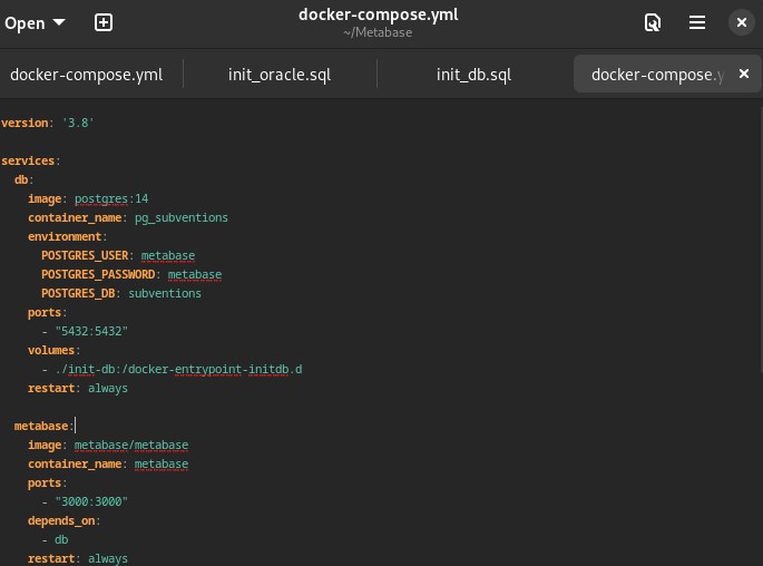 Je voulais une chaîne DataViz locale, reproductible : PostgreSQL pour les données, Metabase pour l’analyse, et Docker Compose pour démarrer/stopper le tout en une commande. L’objectif : packager l’infra, structurer la donnée et exposer des indicateurs métier clairs.