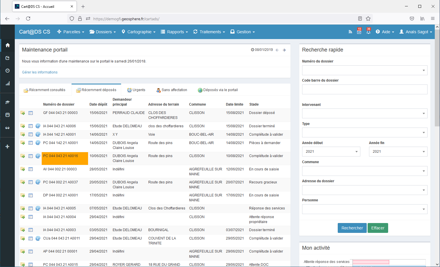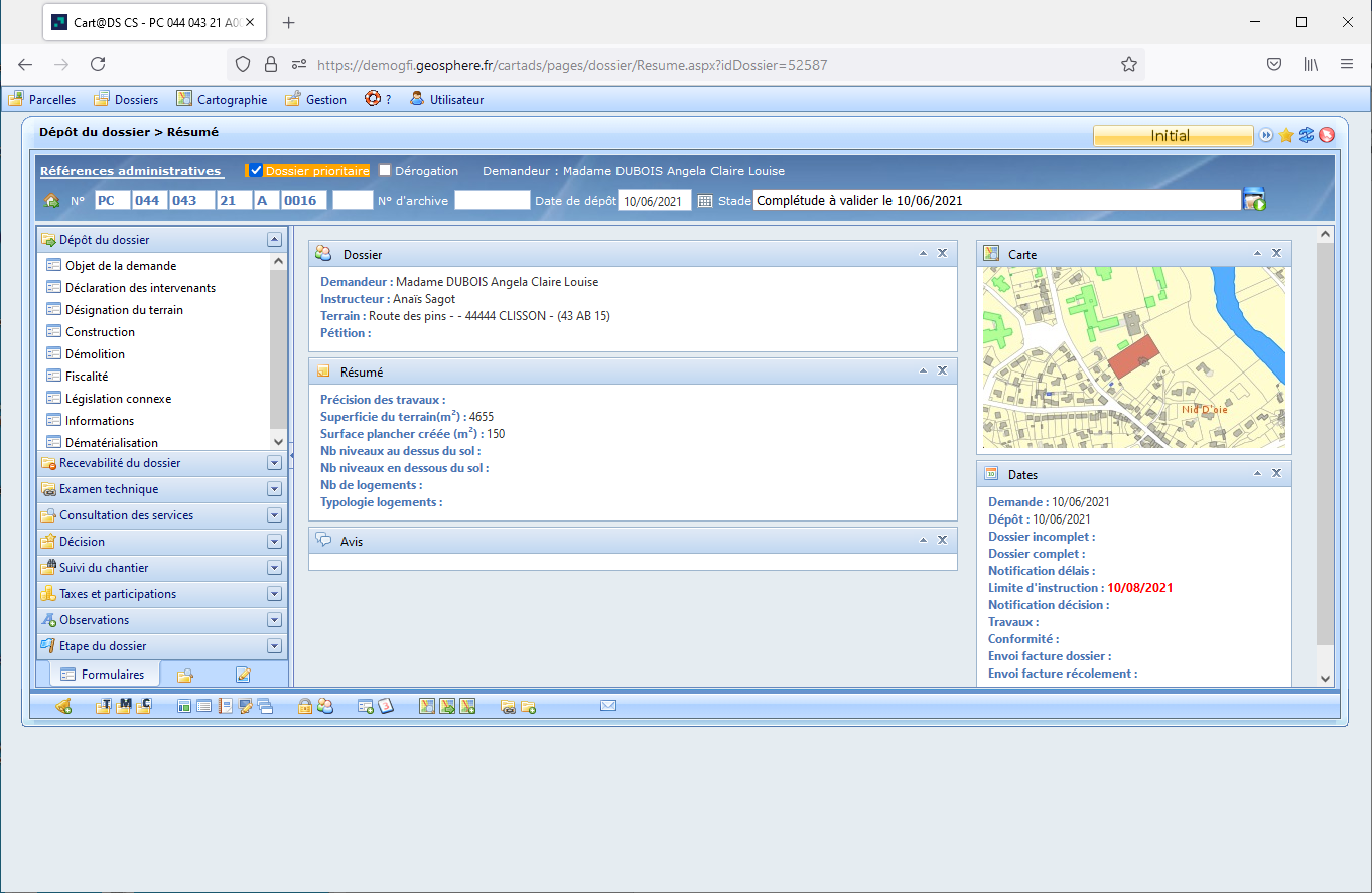 Cart@DS = Déposé ↔ PLAT’AU = Dépôt reçu